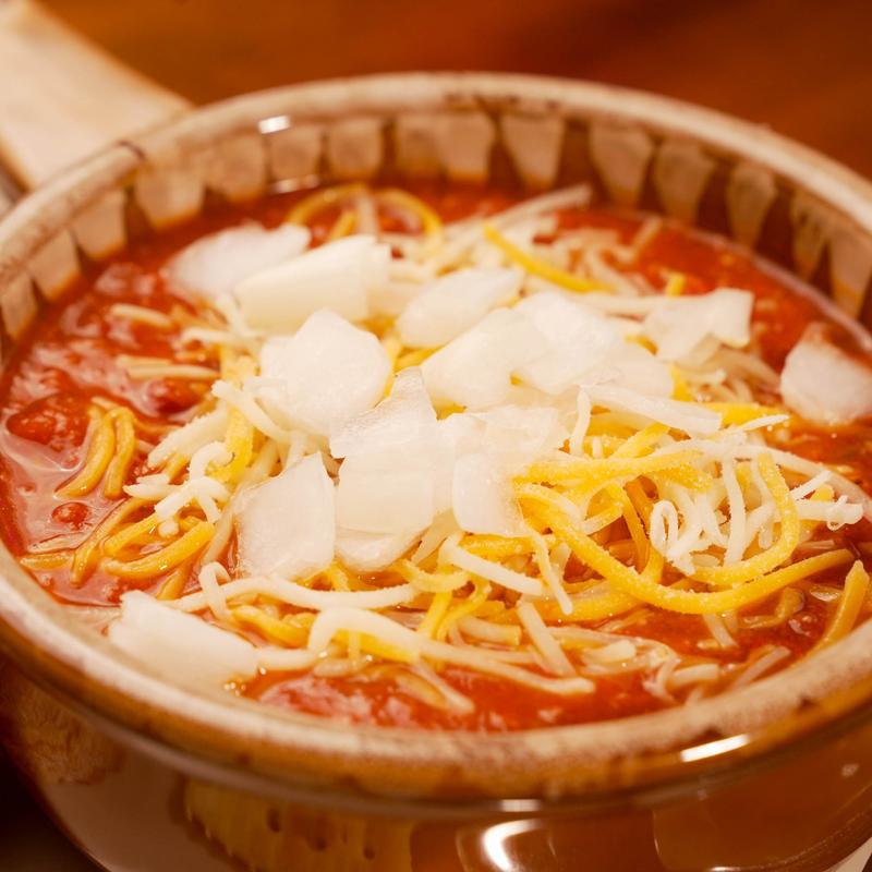 Pasta noodles covered in our homemade chili, topped with cheese and onions.
