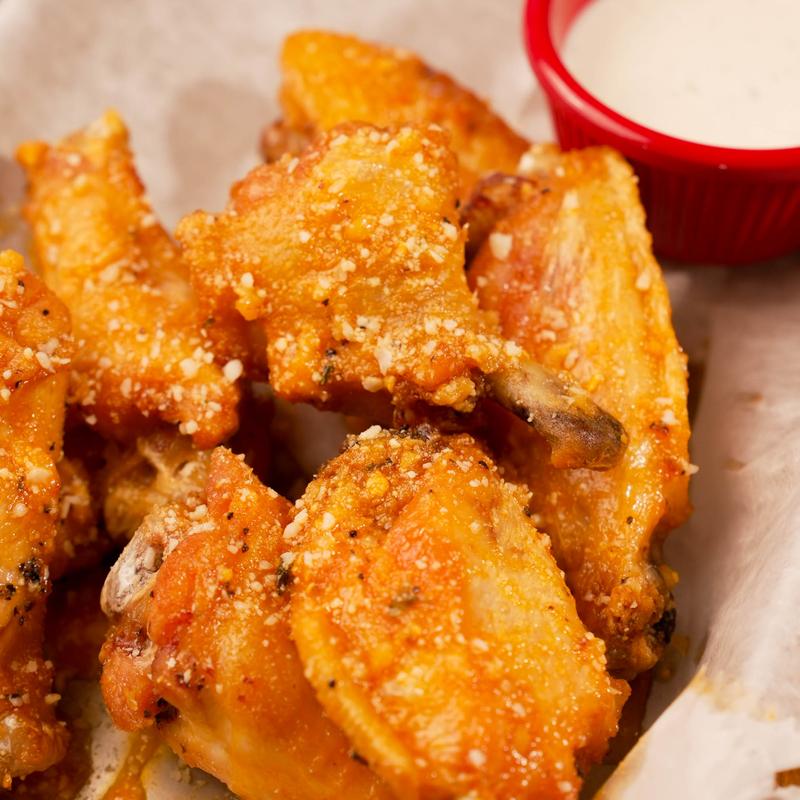 Garlic parmesan, hot, mild, BBQ, teriyaki, asian zing, bell's dry rub, and hot garlic parm | Side of celery +$1.00